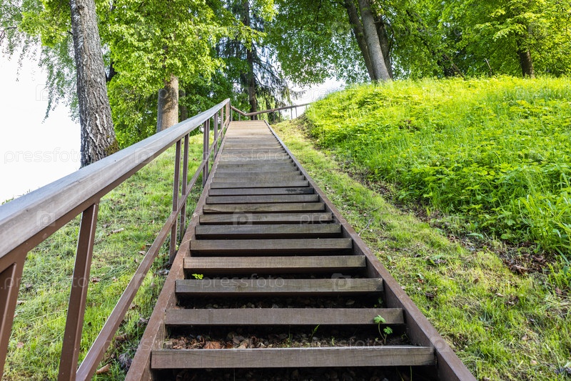 Деревянная лестница, ведущая на холм Витаутаса, Бирштонас, Литва