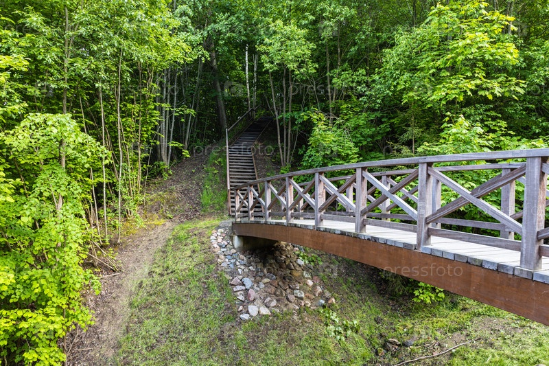 Деревянный мост, ведущий к холму Витаутаса, Бирштонас, Литва
