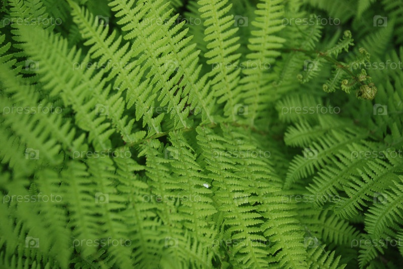 Зеленые широкие и длинные листья папоротника