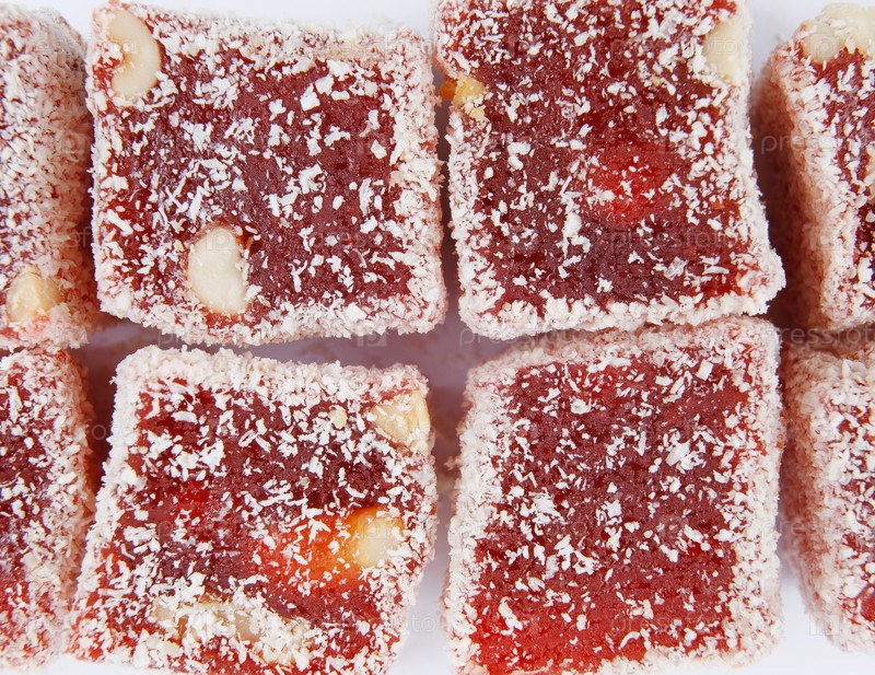 Восточные сладости, рахат лукум на белом фоне