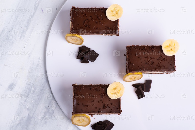 Порция вкусных кусочков шоколадного торта на белой тарелке