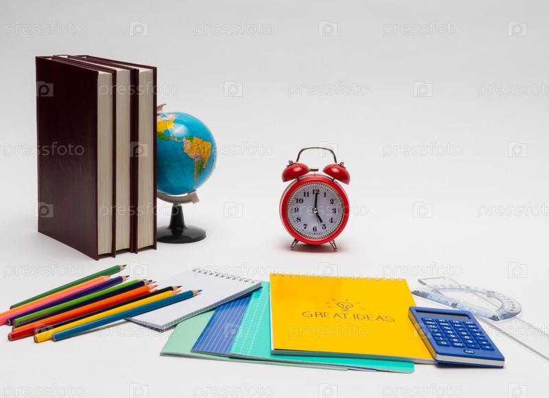 Школьные принадлежности на белом фоне
