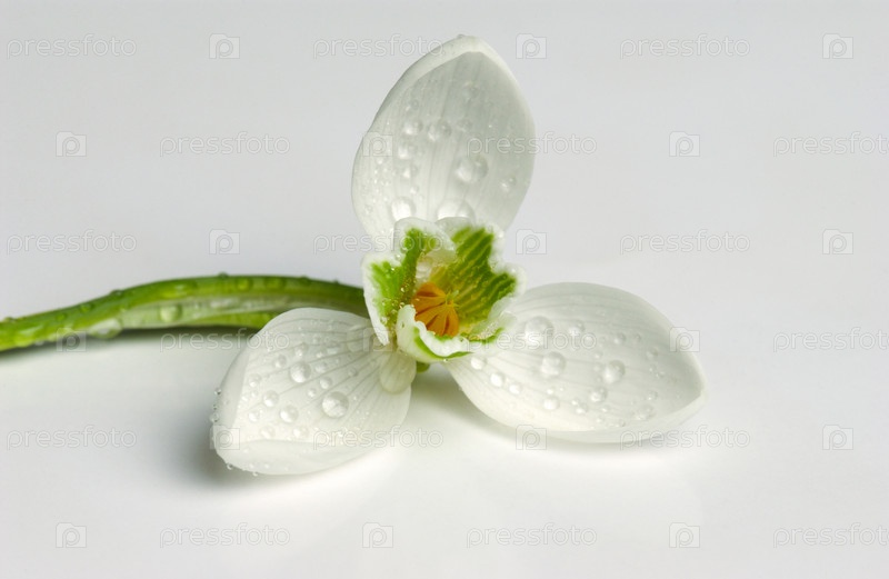 Крупный план изолированного белого подснежника на белом фоне