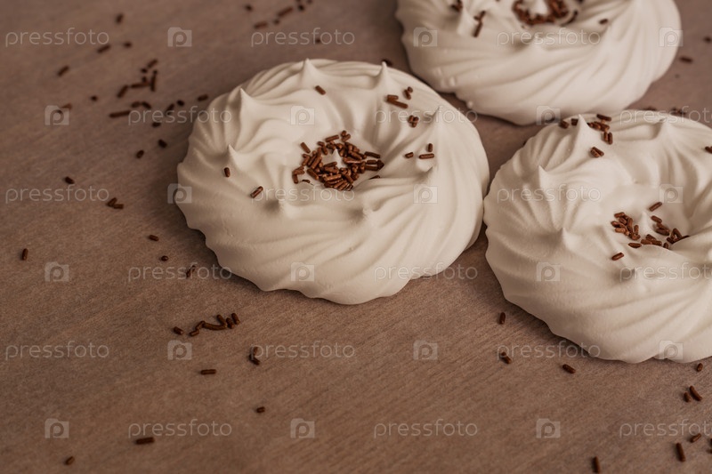 Домашние белые воздушные безе и кондитерские украшения на пергаментной бумаге