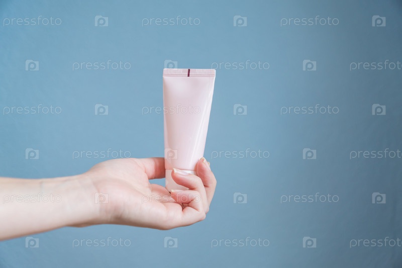 Женщина, держащая увлажняющий крем. Розовая трубка в женских руках