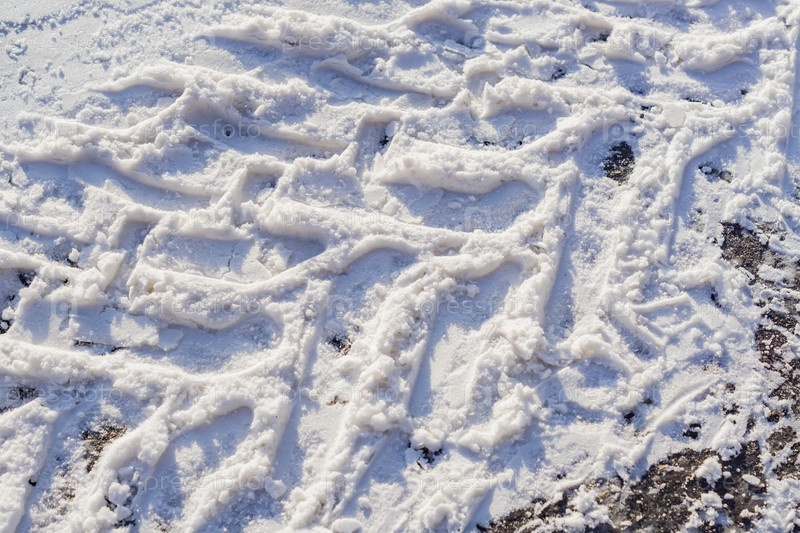 Следы колес на зимней дороге, покрытой снегом в солнечный день