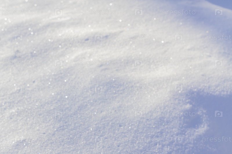 Текстура белого снега, сверкающего на солнце. Расфокусированный фон