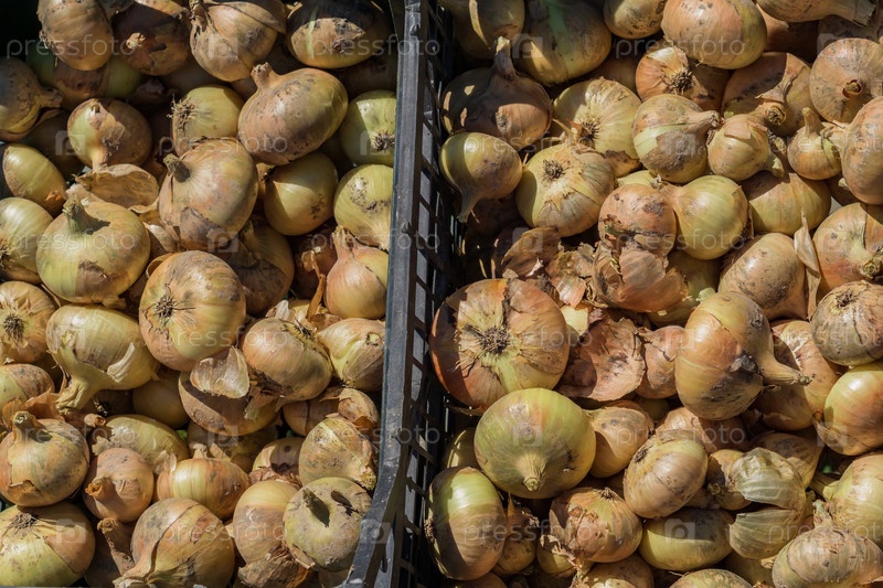 Вид сверху на свежесобранные луковицы лука, фон