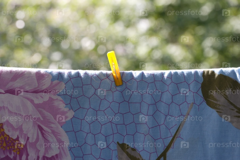 Одна прищепка на синей простыне