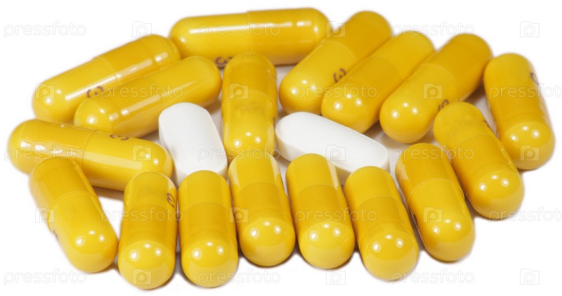 Желтые таблетки, капсулы, изолированы на белом
