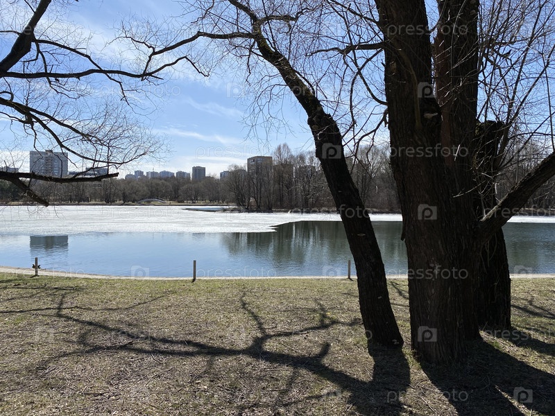 Весна в городском парке в сухой солнечный день