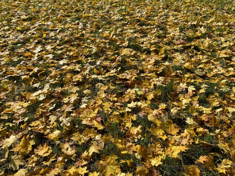 Ковер из желтых кленовых листьев в осенний сухой солнечный день