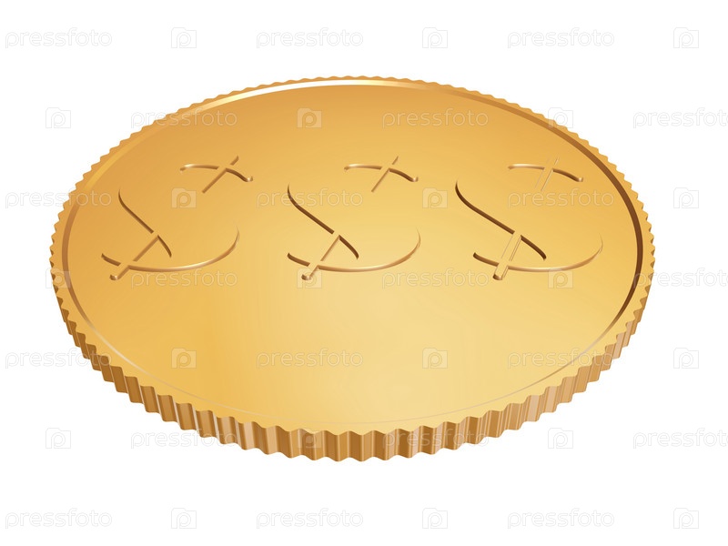 Золотая монета 1 доллар на белом