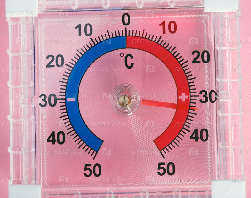 Наружный оконный настенный термометр на розовом фоне