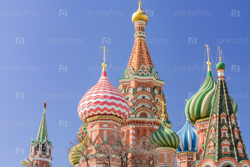 Собор Василия Блаженного на Красной площади в Москве. Купола собора освещены солнцем