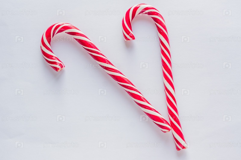 Две леденцы на белом фоне. Традиционные рождественские конфеты
