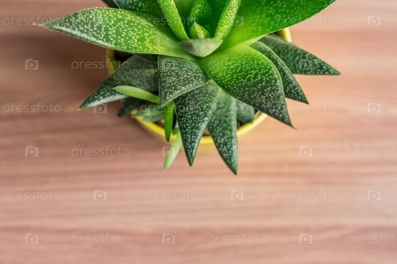 Вид сверху на растение алоэ вера в желтом керамическом горшке, комнатное растение, домашнее садоводство