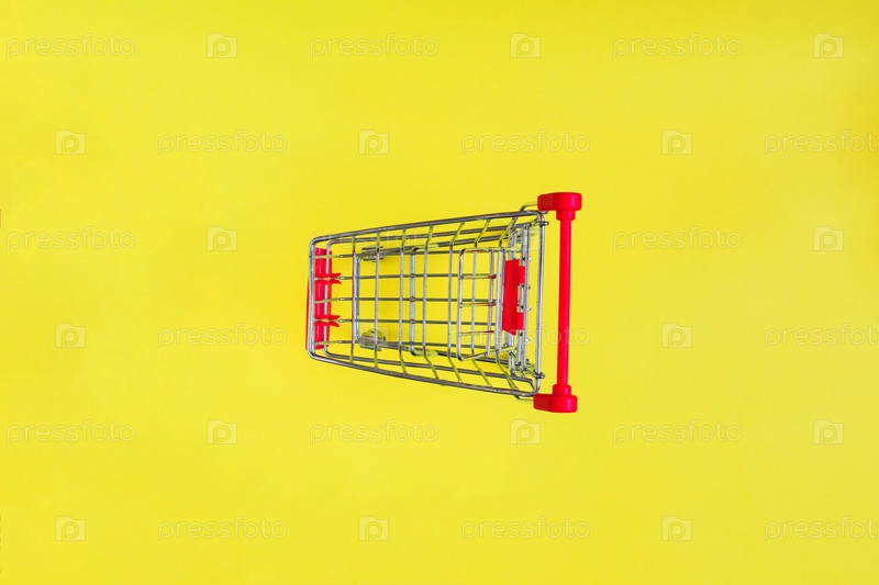 Пустая корзина на желтом фоне. Вид сверху, минимальная плоская планировка