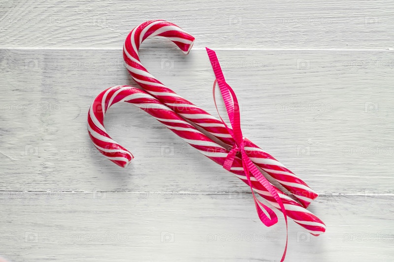 Две леденцы на деревянных фоне. Традиционные рождественские конфеты