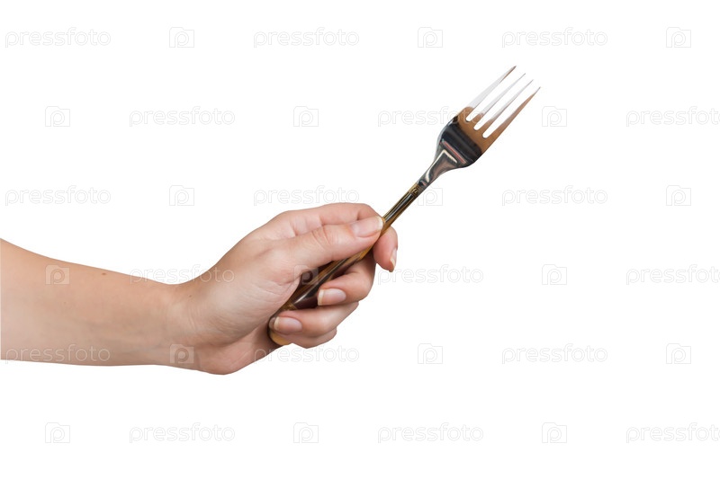 Женщина рука вилка, изолированные на белом фоне. Жест еды