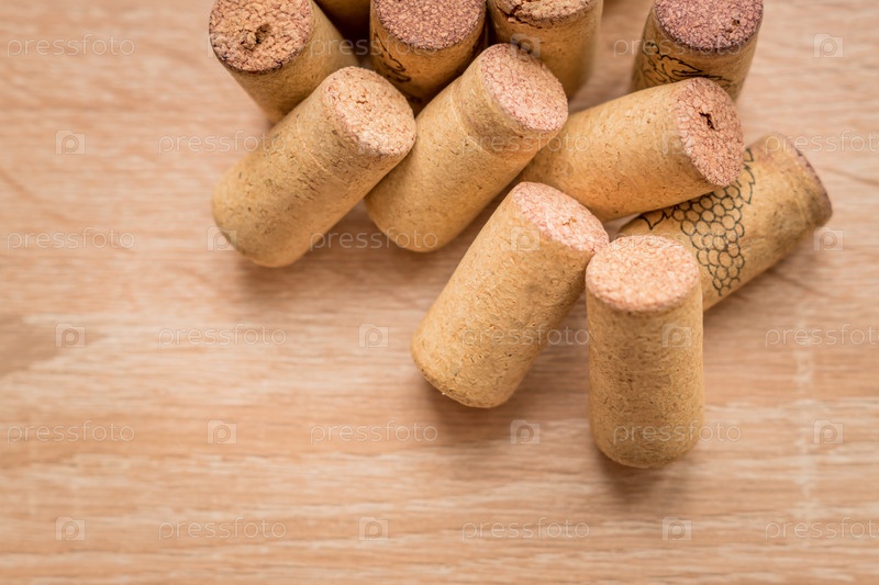 Куча использованных винных пробок на деревянном фоне с копией пространства