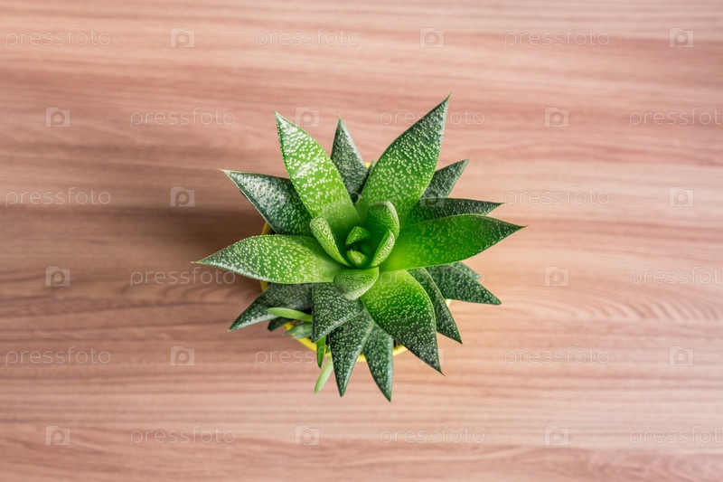 Вид сверху на растение алоэ вера в желтом керамическом горшке, комнатное растение, домашнее садоводство