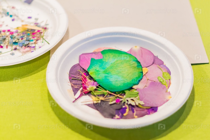 Крупным планом сухих цветов на столе. мастерская в классе