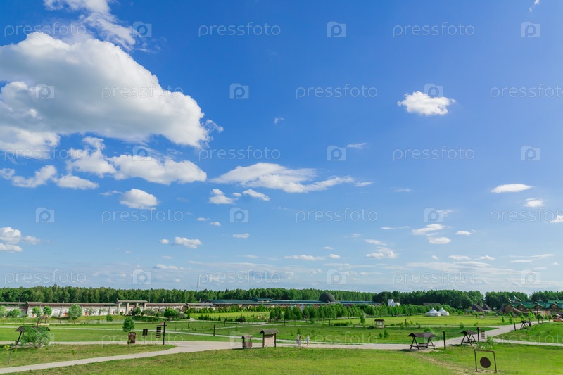 Россия, Калужская область - 21 июня 2018 г.: Панорамный вид на парк Этномир. этнографический и развлекательный парк-музей