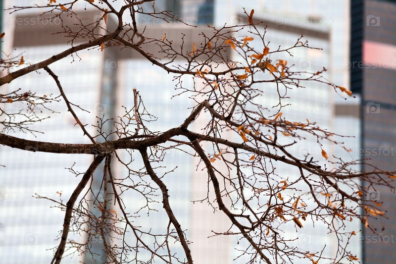 Осеннее дерево с последними листьями в городе