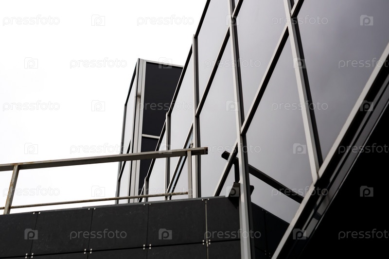Фрагмент современного здания из стекла и металла. Экстерьер делового офиса