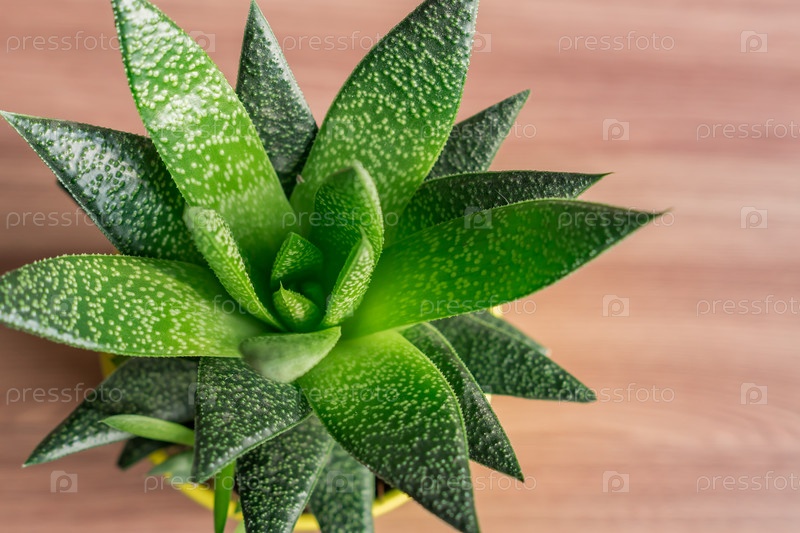 Вид сверху на растение алоэ вера в желтом керамическом горшке, комнатное растение, домашнее садоводство