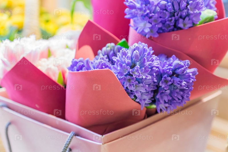 Красивый цветущий букет фиолетовых гиатинтов