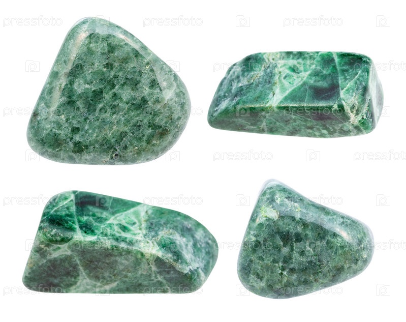 Набор различных жадеитовых драгоценных камней, изолированных на белом