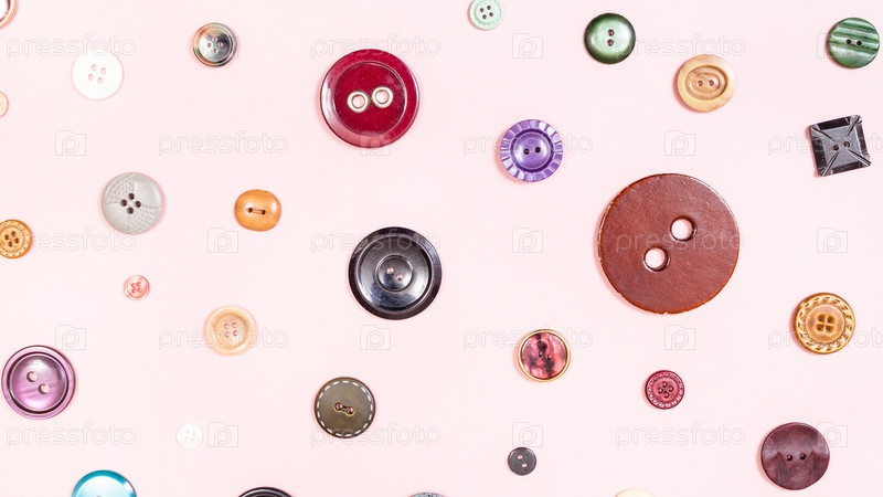 Вид сверху на различные кнопки, расположенные на розовом