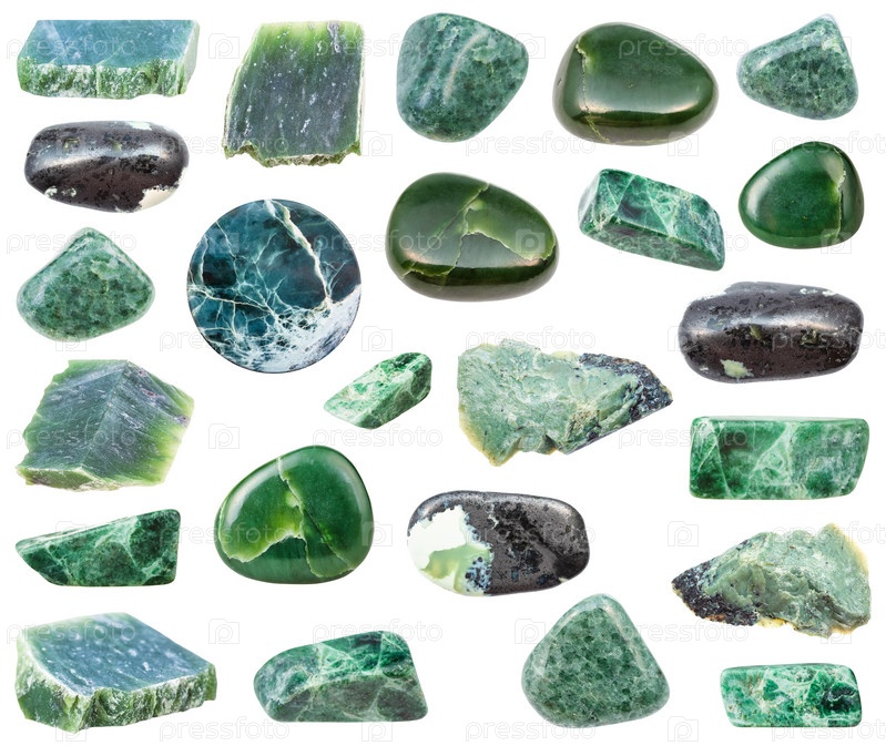 Коллекция различных нефритовых минеральных драгоценных камней