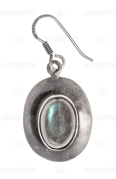 Старинная простая серебряная серьга с камнем из лабрадорита