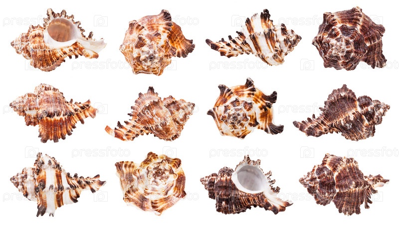 Набор коричневых раковин морских улиток изолирован