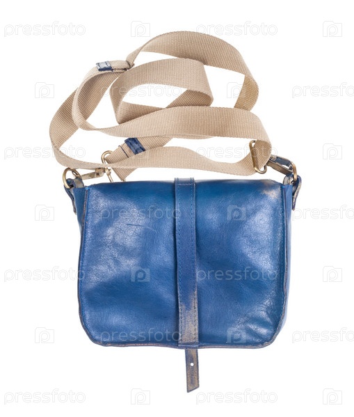 Обратная сторона синей сумочки с текстильным ремешком