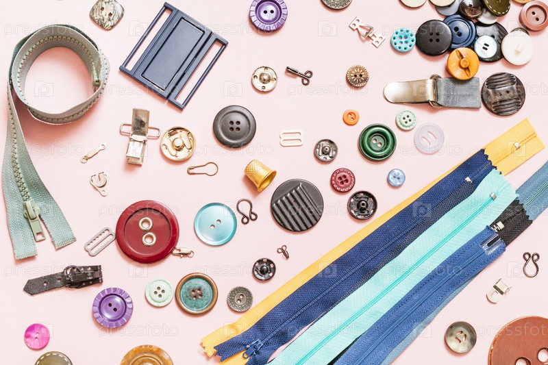 Набор различных швейных изделий на розовом фоне