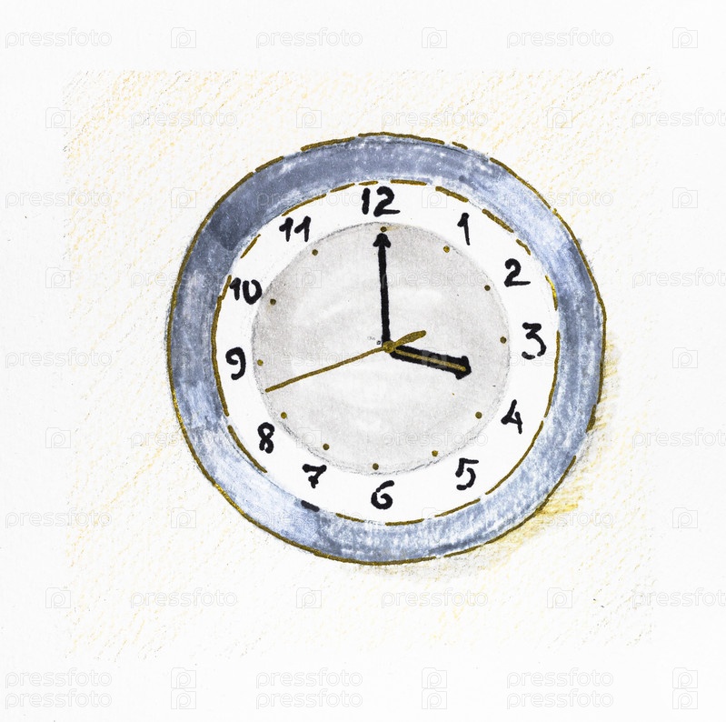 Эскиз круглых часов, показывающих 4 часа на циферблате