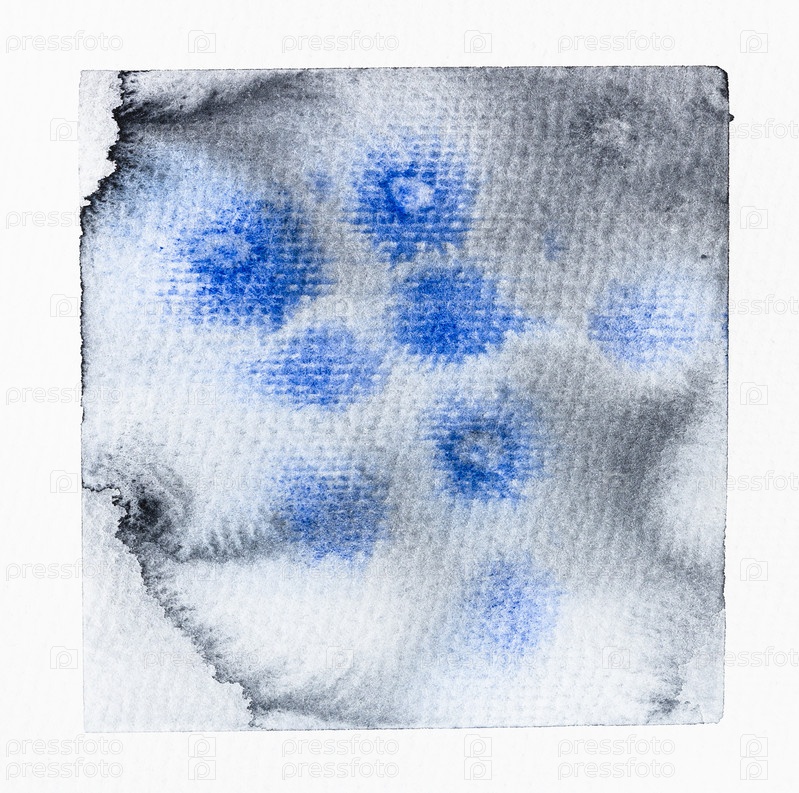 Пятна, сделанные синими акварельными каплями на влажной краске