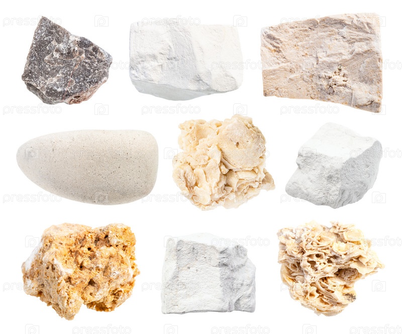 Набор различных известняковых пород, изолированных на белом