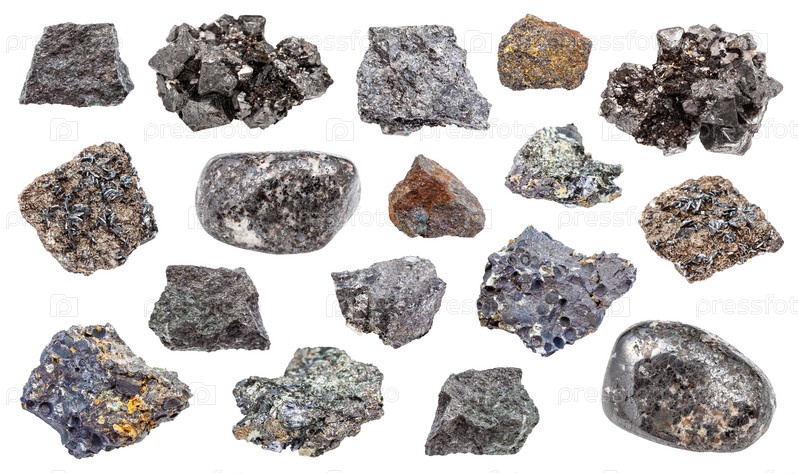 Набор различных изолированных пород магнетита (железной руды)