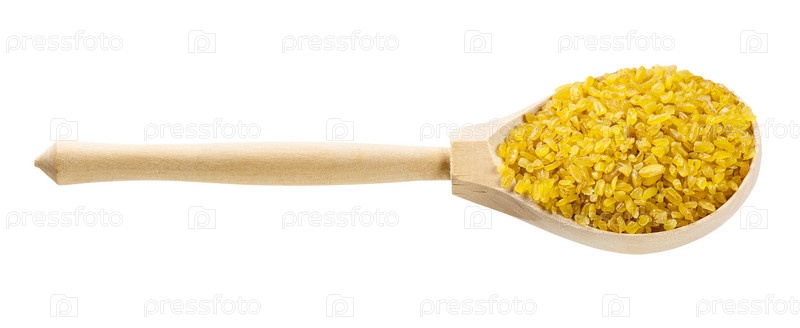 Деревянная ложка с изолированной пшеничной крупой булгур