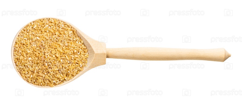 Вид ложки с дроблеными полированными зернами пшеницы