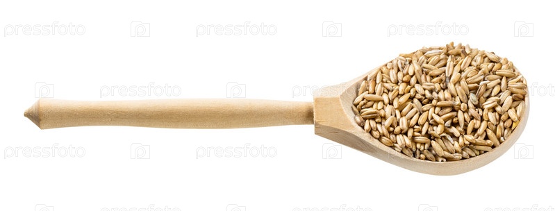 Деревянная ложка с изолированными неполированными зернами овса