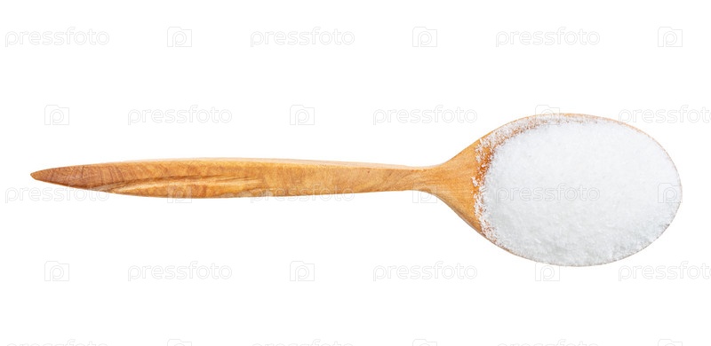 Вид сверху на деревянную ложку с ароматизатором глутамата