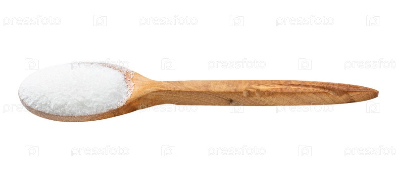 Деревянная ложка с ароматизатором глутамата изолирована