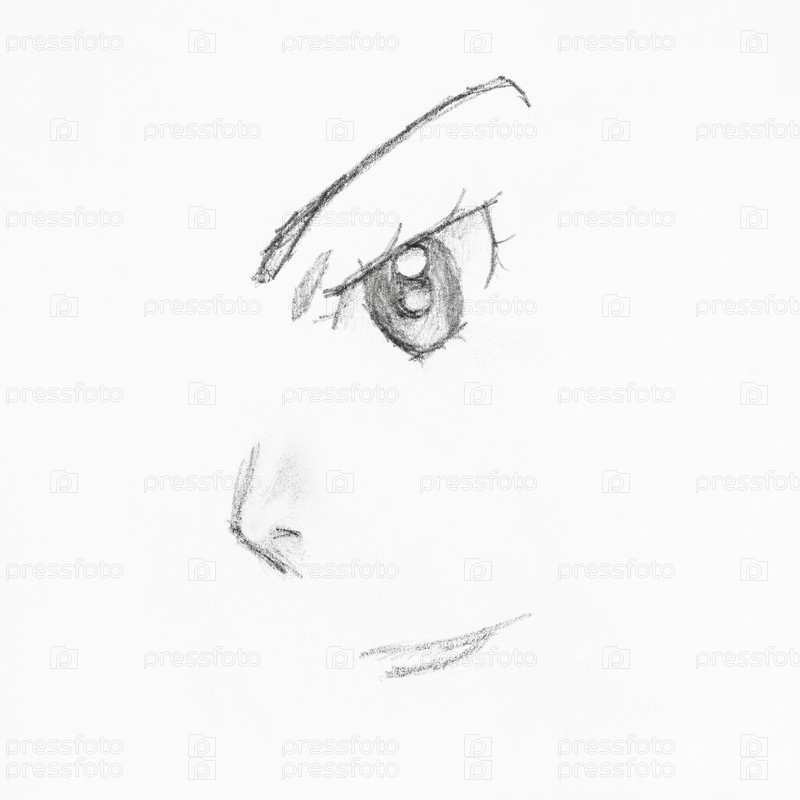 Деталь женского аниме-лица с глазом и носом