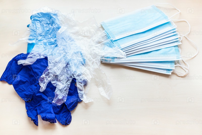 Куча защитных масок для лица и перчаток для рук